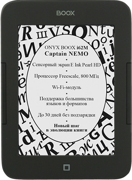 Электронный ридер Onyx Boox i62M версии Captain Nemo - читалка с шестидюймовым сенсорным дисплеем E Ink Pearl HD с контрастностью 12:1 и функцией Multi-touch, имеет поддержку Wi-Fi.