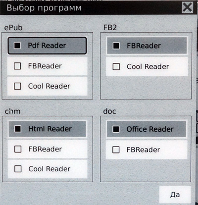 Однако, немного забегая вперед, скажу, что в настройках ридера оказалось можно выбирать различные программы для чтения тех или иных форматов.