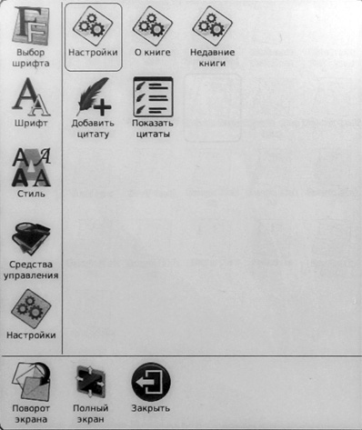 Меню работы с текстов EPUB выглядит совершенно точно так же, как и в FB2, и работает там все точно так же.