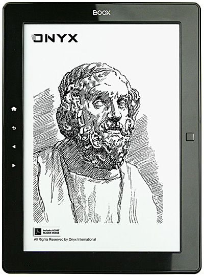 Однако компания Onyx International не стояла на месте, и они разработали и выпустили новую модельку под названием Odysseus, которая интересна прежде всего своими размерами - дисплей у нее почти десятидюймовый (9,7"), что довольно редко встречается у электронных ридеров. Между тем большие экраны на самом деле достаточно востребованы. Во-первых, на таких экранах уже можно читать всякую документацию и периодику в PDF-формате (на шестидюймовых экранах такие файлы выглядят слишком мелкими). Во-вторых, люди с не очень хорошим зрением любят большие экраны за то, что на них можно сделать крупный шрифт и читать с комфортом.