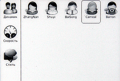 Первая пиктограмма вызывает вот такое меню - выбор голоса, задание скорости чтения и так далее.
