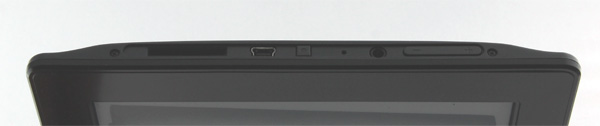 На нижнем торце - регулировка громкости звука, выход для наушников, кнопка Reset, клавиша включения, miniUSB и слот для карты памяти.