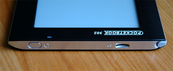 С кнопками тут все сделано достаточно своеобразно. В обширной нижней части ридера (она по высоте почти 5 см, могла бы поместиться клавиатура) размещена одна-единственная кнопка "ядерного чемоданчика" - здоровенная кнопка Home (или Esc). Тут видно влияние более чем спорного подхода фирмы Apple из серии "Наши пользователи слишком тупы, чтобы пользоваться более чем одной кнопкой", и создатели PocketBook 302 решили перещеголять создателей iPhone тем, что в их кнопку Home можно попасть не только пальцем, но и ногой в кирзовом сапоге.