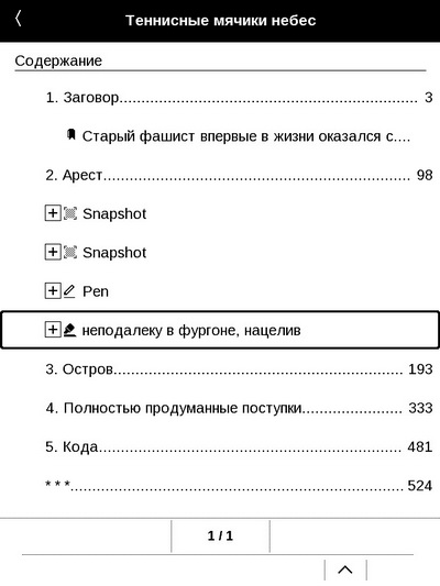 Закладки, заметки, выделения, снимки - все это выводится в оглавлении (почему-то).