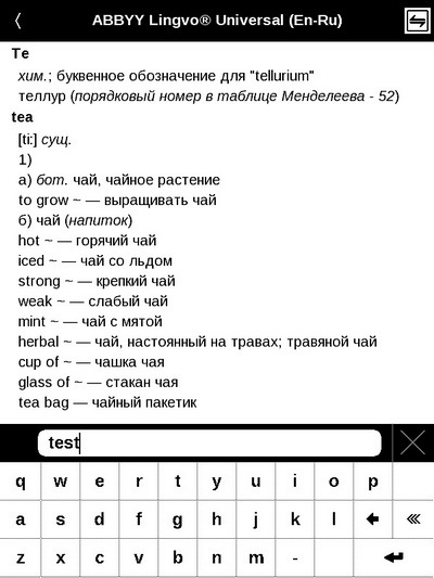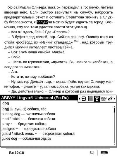 Словарь - поиск выделенного слова или введенного слова или фразы во встроенном словаре ABBYY Lingvo.