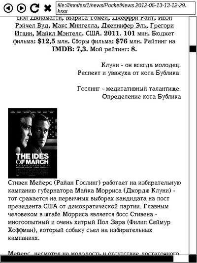 Пару замечаний по Sony Reader PRS-T1. Во-первых, цена сейчас от 150$ за устройство из США. Сколько стоит официально завезенное не разберешь, в прайсах никак не выделяется на фоне "серых" аппаратов. Во-вторых, Sony выпустила прошивку с исправлениями и поддержкой fb2, но только для официальных устройств. Мне на Киндле 3 и PRS-300, а знакомым с Т1, ни разу и не потребовалась поддержка fb2, mobi и epub на Флибусте есть к каждой книге. В-третьих, с зимы появилась куча альтернативных прошивок или отдельных пакетов, с которыми пользоваться Т1 стало гораздо приятнее. Например, пакет PRS-T1_Flasher_minimal.