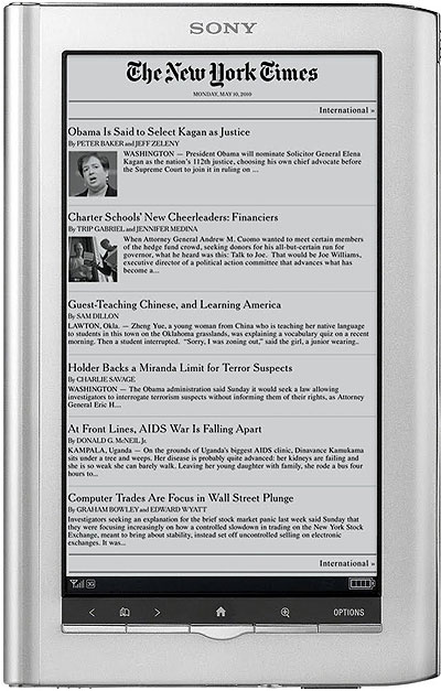 Читать периодику в PRS-950 также достаточно удобно - есть переход по статьям через гиперссылки, переход по разделам, вызов содержания. Но это касается, разумеется, изданий, которые специально подготовлены для использования в ридере.