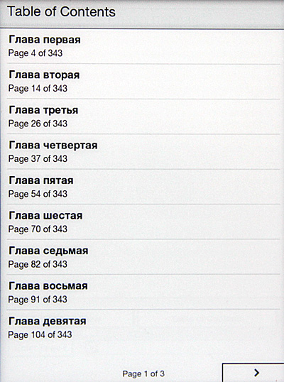 Страницы листаются клавишами, расположенными снизу, также легко листаются жестами пальцев вертикально или горизонтально.