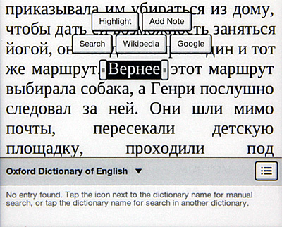 Раздел More (еще) - поиск (только латинскими буквами), смена ориентации экрана, просмотр информации о книге и включение отображения аннотаций (то есть каляк-маляк, которые вы сделали).