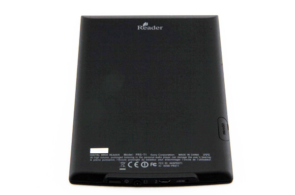 Легкий и дешевый ридер из алюминия не сделать. Поэтому корпус нового PRS-T1 сделан из пластмассы. Черная глянцевая пластмасса на лицевой части, прорезиненный пластик на задней крышке.