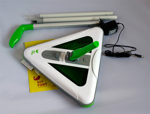 Комплектация: электровеник, зарядное устройство, разъемная ручка со встроенным аккумулятором, инструкция.