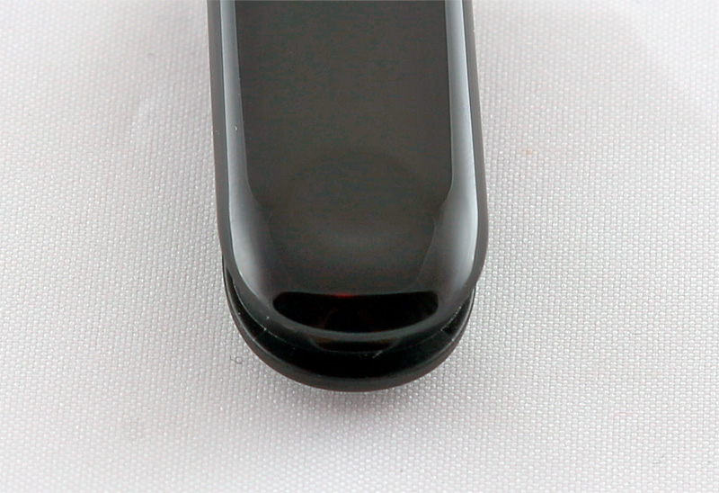 Управляющая кнопка на лицевой части браслета есть, но она представляет собой просто небольшое углубление в нижней части корпуса.