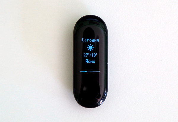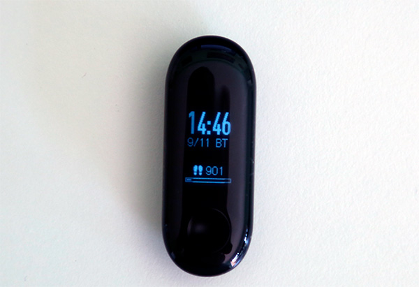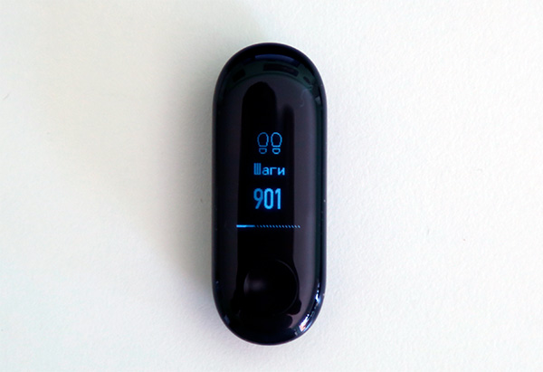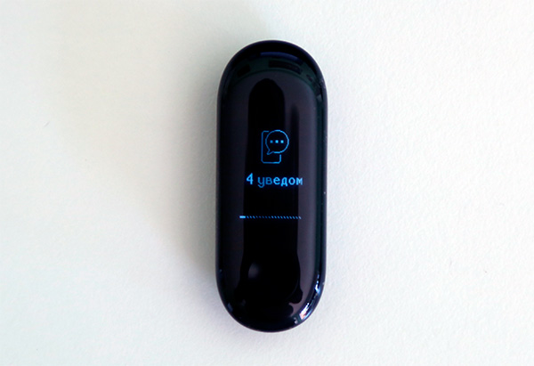 Дисплей у браслета монохромный, экран включается при нажатии кнопки (углубления) или жестом руки (этот вариант задается в настройках приложения).