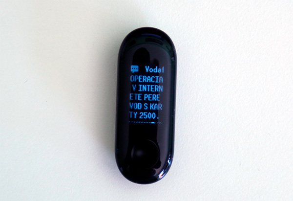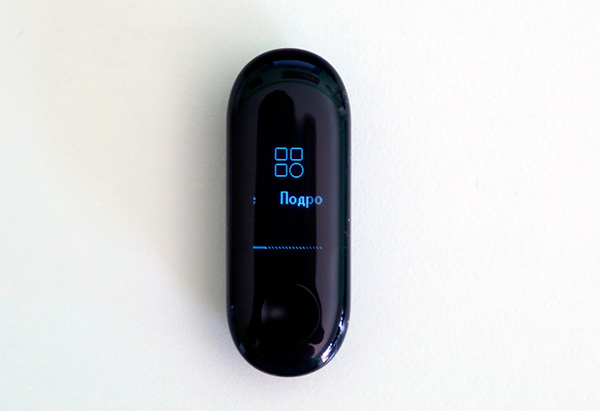 При включении на браслете появились символ подключения к смартфону и какие-то иероглифы. А я читал в обзорах о всяких танцах с бубном, для того чтобы заставить смартфон понимать кириллицу, однако также сообщалось, что новые прошивки уже должны поддерживать русский из коробки.