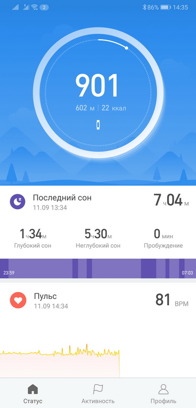 Претензий к работе этого браслета не было никаких. Уведомления делал исправно (при этом вибрирует), пользоваться было удобно. Шаги считает, пульс измеряет, сон замерял достаточно точно.