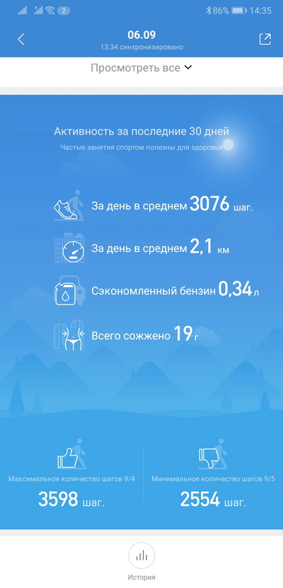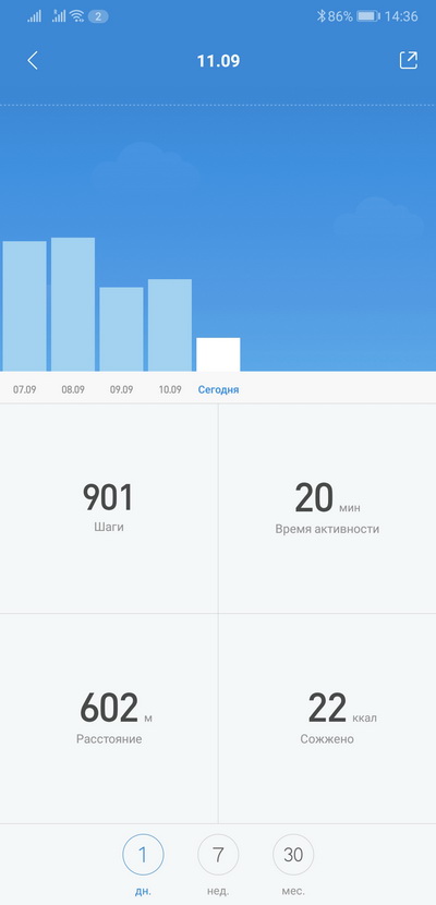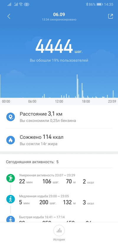 В шагах также есть расстояние, килокалории и почему-то заряд батареи браслета (зачем они в шагах - непонятно совершенно).