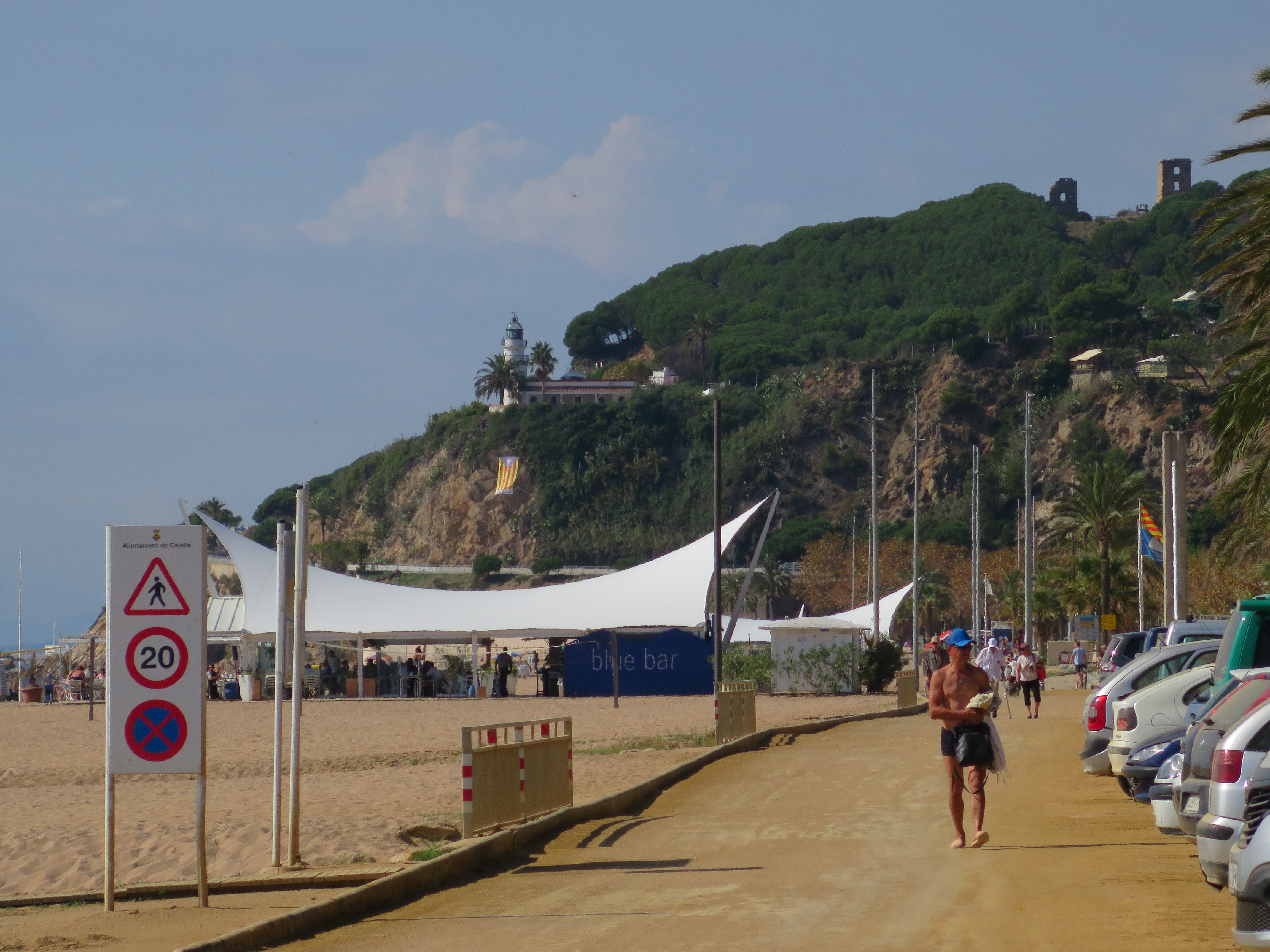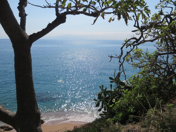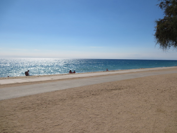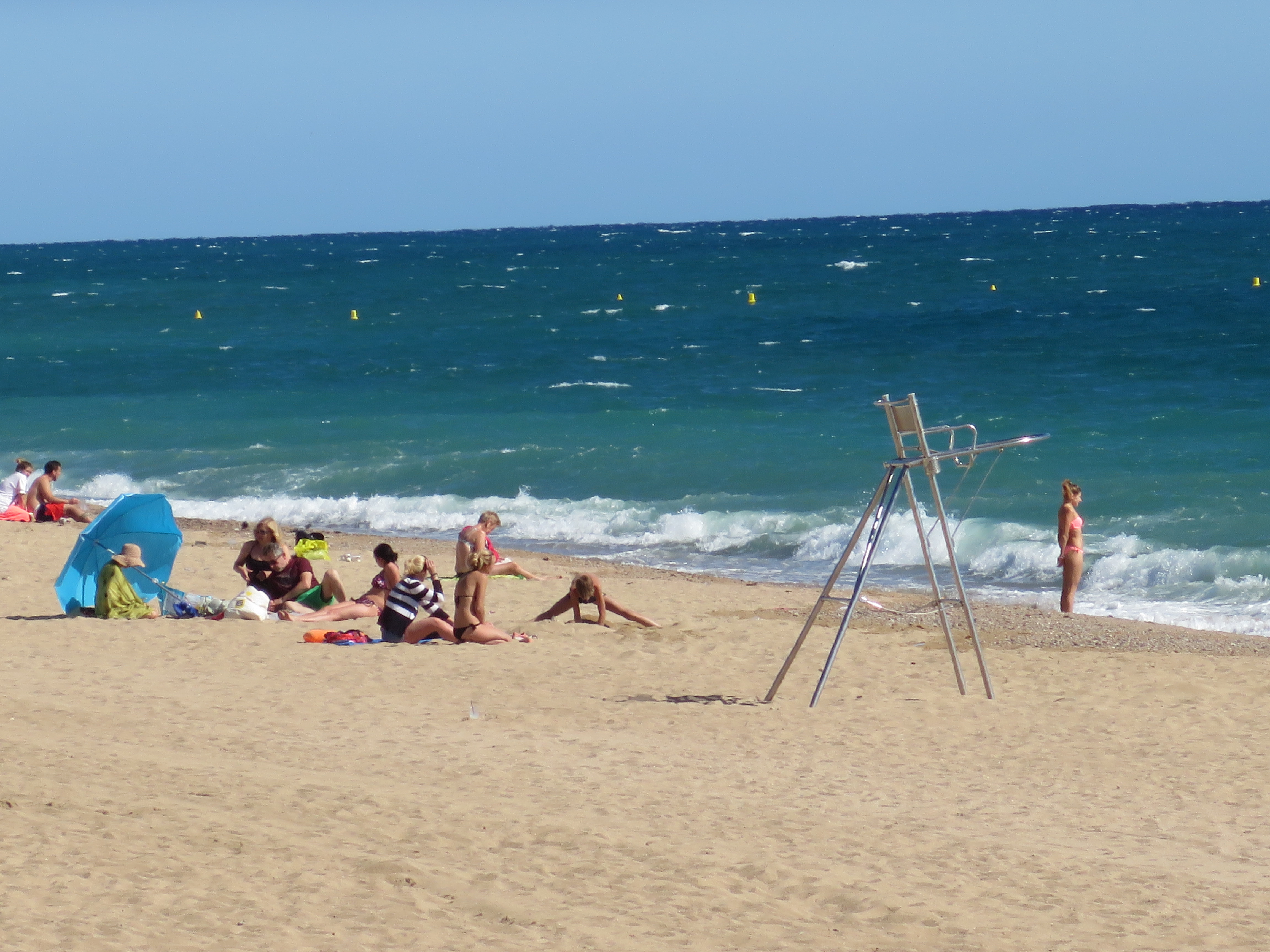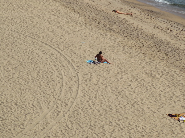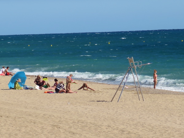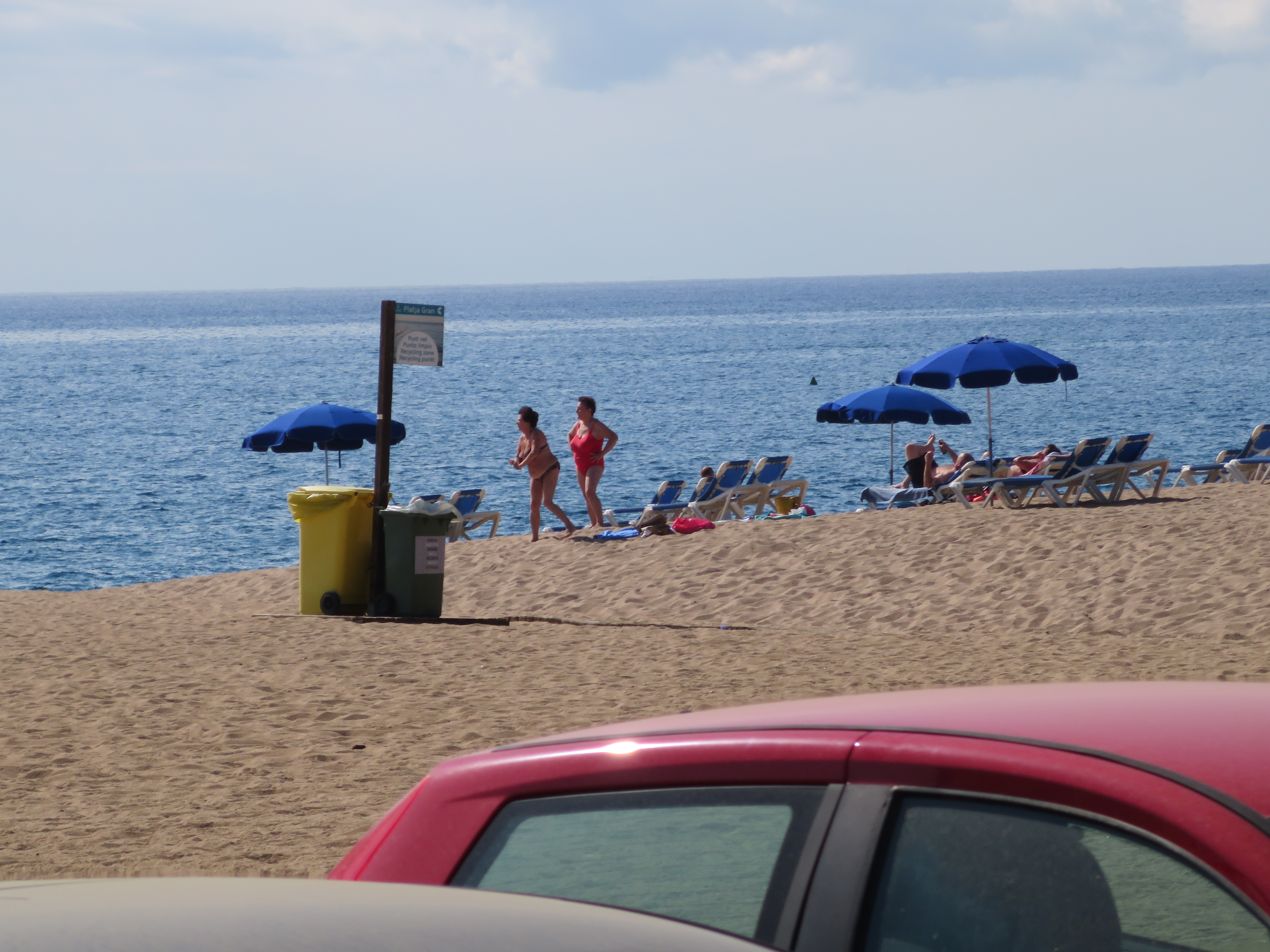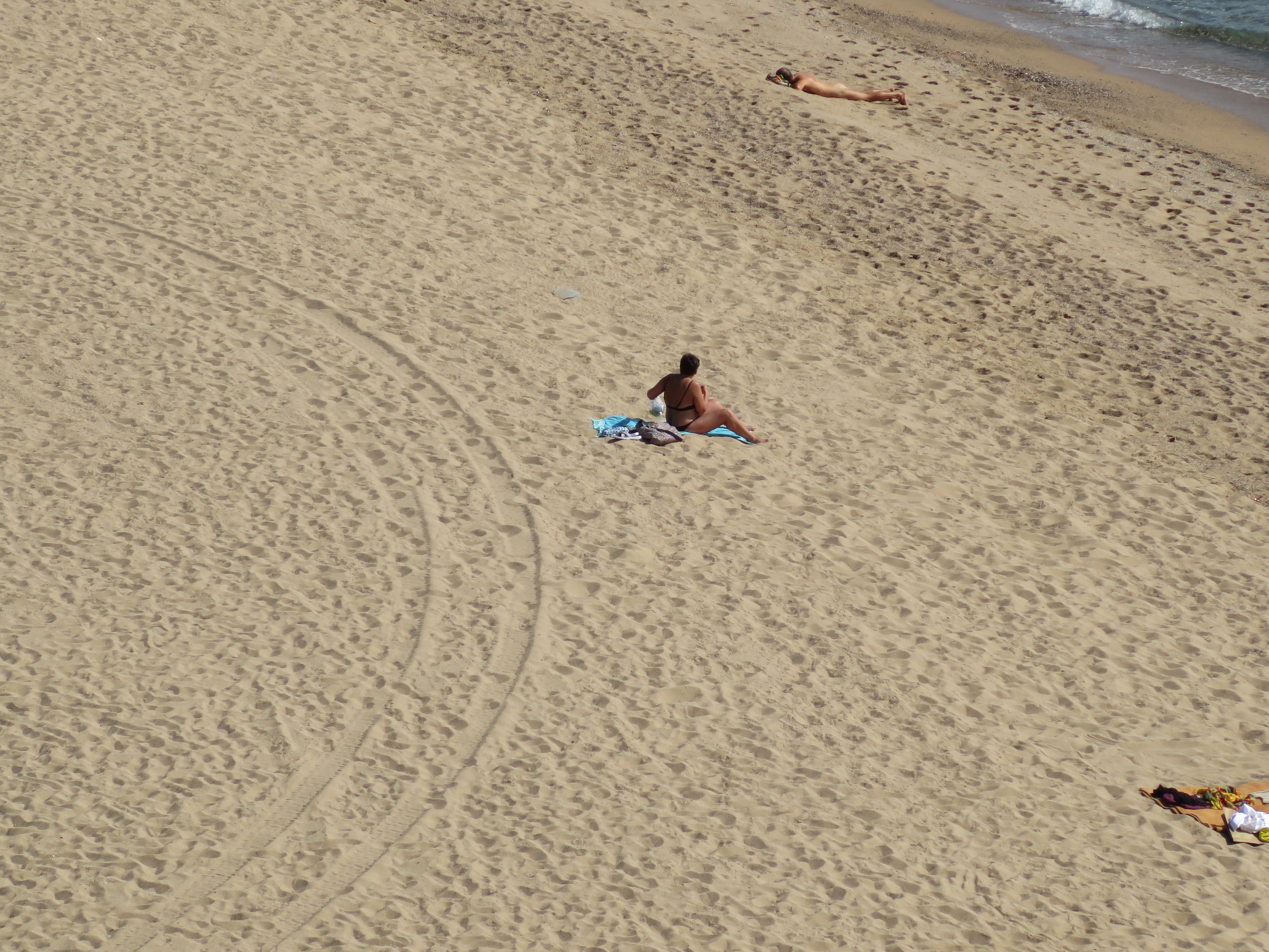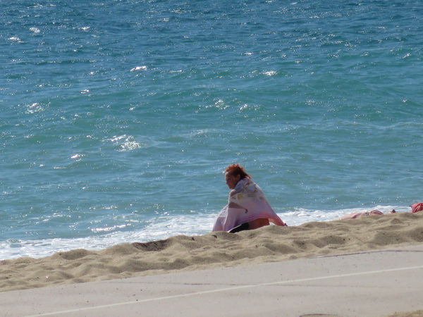 Пляж, широкий угол. Видите, там тетеньки рядом с зонтиком? Сейчас приблизим.