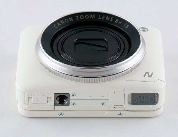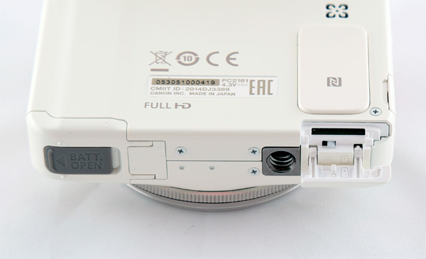 На нижнем торце - отсек для карты памяти, резьба под штатив, отсек с аккумулятором.