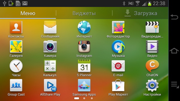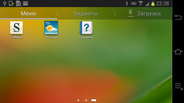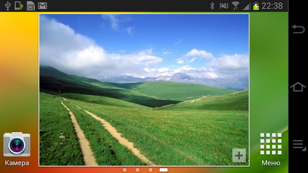 Десктоп. Крайние нижние пиктограммы - камера и меню приложений - выводятся на любых рабочих столах.