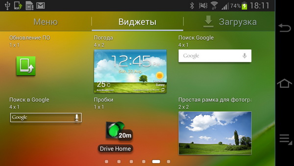 Установленные в системе виджеты.