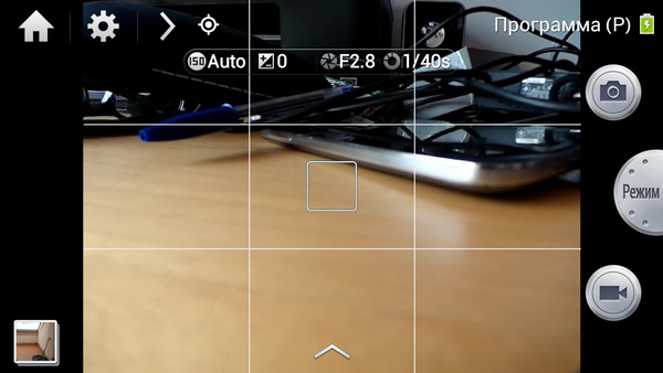 Ну и теперь давайте посмотрим, как здесь работает камера. Фотокамера управляется андроидным приложением, которое заметно "заточено" под данное устройство.
