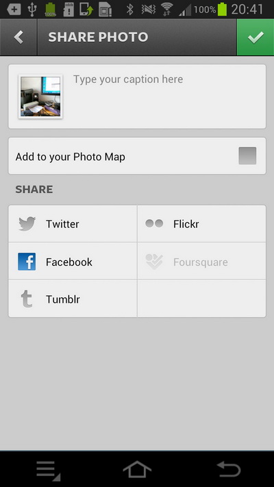 Ну и одна из наиболее важных его функций, ради которых это все задумывалось - возможность сразу после съемки редактировать фотографии и отправлять их в различные социальные сети.