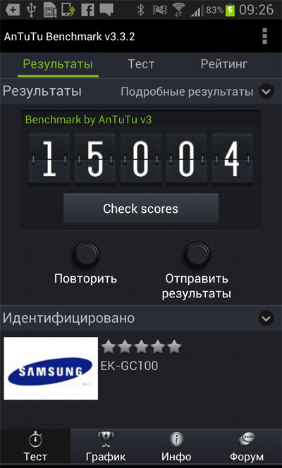 Индекс по AnTuTu Benchmark - 15004 (у Galaxy S 4 - 26755).