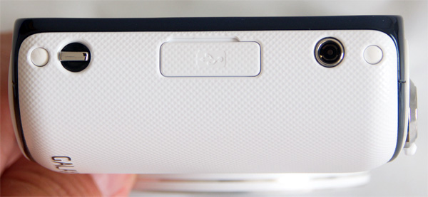 Правый торец - кнопка открытия вспышки и выход динамиков.