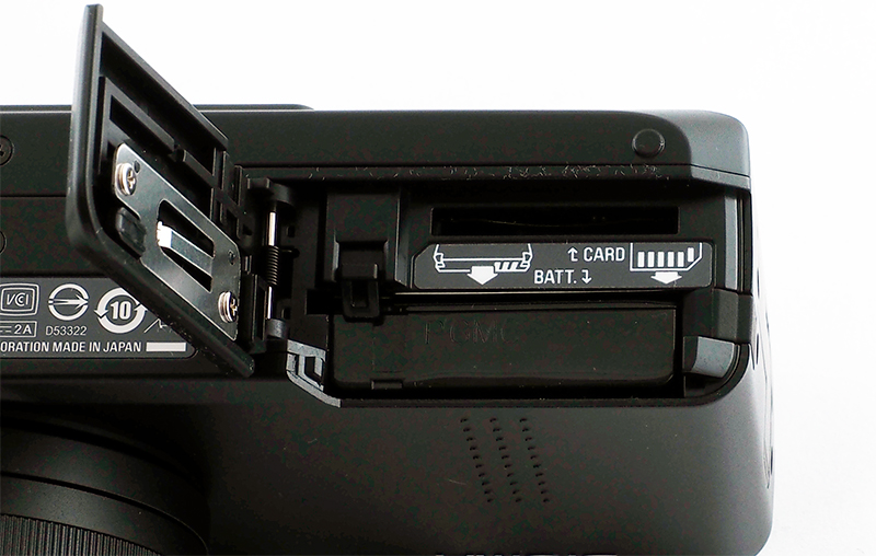 Аккумулятор и карта памяти располагаются в нижнем отсеке с крышкой на защелке. Крышка и крепление, кстати, очень хрупкие, у меня крышка отвалилась буквально через месяц использования.
