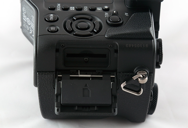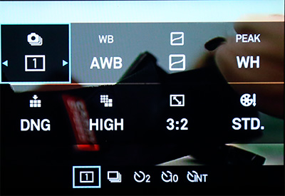 Интересная особенность данной камеры: рядом с обычным дисплеем расположен узкий вертикальный OLED-дисплей, на который выводится справочная информация. Такое расположение, на мой взгляд, значительно удобнее, чем жидкокристаллические дисплеи зеркалок, которые традиционно располагают на верхнем торце. И информации на нем помещается больше.