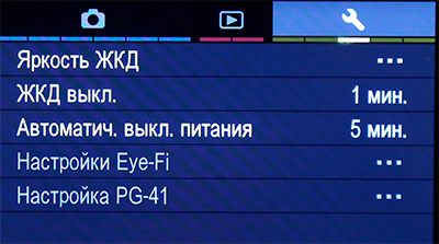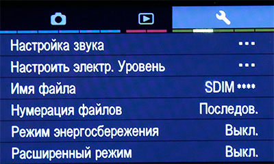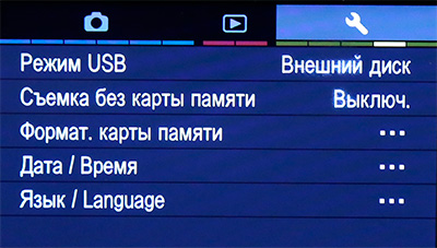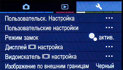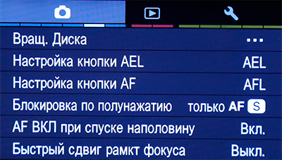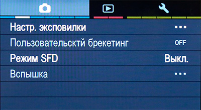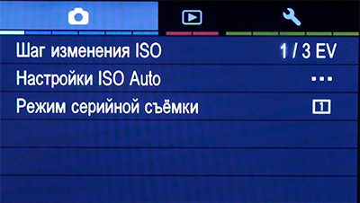 Меню настроек при съемке.