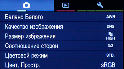 В разделе "Качество изображения" можно выбирать: JPEG, DNG, X3F, также оба формата RAW можно задавать вместе с JPEG.