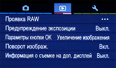Настройки режима просмотра отснятых кадров.