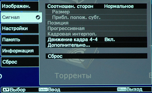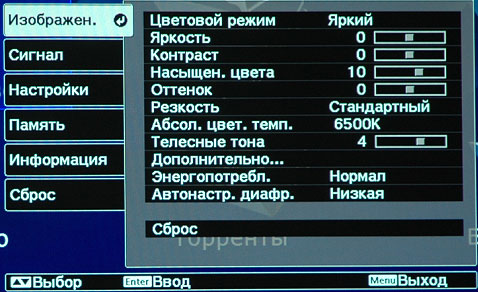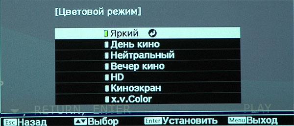 В режимах начиная с "Нейтрального" (далее "Вечер кино", "HD", "Киноэкран") автоматически включается фильтр Epson Cinema Filter, который придает натуральным цветам естественность.