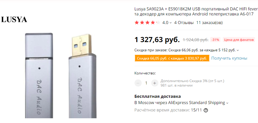 Подойдет даже Lusya SA9023A + ES9018K2M, стоит очень недорого, но вы удивитесь что могут затычки за 100 баксов.