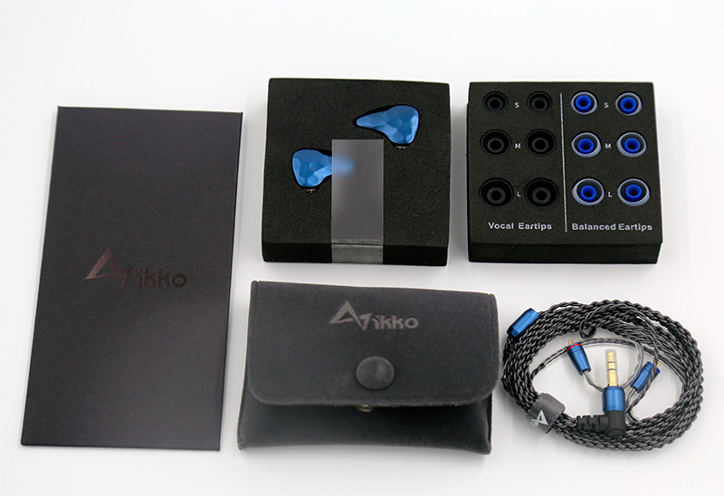 Комплект поставки: наушники, кабель, два комплекта амбушюр разного назначения по три размера в каждом, бархатный чехол с защелкой, инструкция.