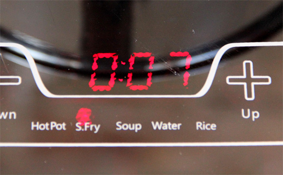 Еще одна интересная особенность - кнопка Elec./Volt. При ее нажатии сначала показывается реальное напряжение в сети (нагрев от него не зависит, но просто может быть интересно узнать), а второе нажатие показывает расход энергии с начала приготовления пищи - например, 0,15 киловатта в час.