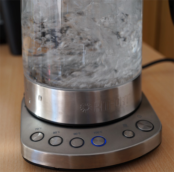 Обычный черный чай желательно заваривать при температуре 90 градусов. Зеленый чай, как известно, заваривают при температуре 70 градусов, которую никак не получить на обычном чайнике: там нужно вскипятить воду, потом дождаться, когда она остынет, после чего заваривать. При этом легко ошибиться: взять или слишком горячую, или уже сильно охлажденную воду.