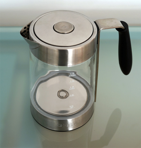 ..Колба закрывается крышкой с хитрой кнопкой-ручкой, которая утапливается перед кипячением, фиксируя крышку, а после окончания кипячения сама поднимается..