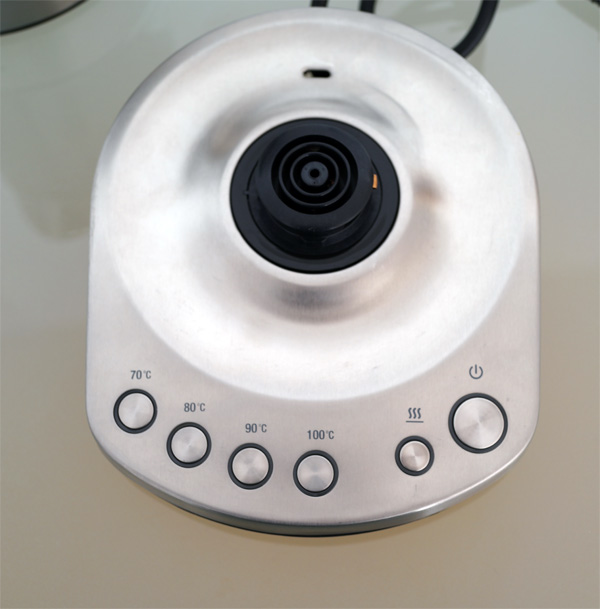 Подставка тут очень хитрая. Она не просто подает питание нагревательному элементу, как в обычном чайнике, а может отрабатывать различные программы.