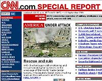 На сервере CNN через пару часов после начала событий была произведена замена главной страницы на облегченный вариант, где содержалась только информация о трагедии. Один из самых крупных российских информационных серверов "РосБизнесКонсалтинг", вероятно, был рассчитан на подобные нагрузки, потому что без дополнительной адаптации к данной экстремальной ситуации выдержал резкое увеличение количества запросов и был доступен практически все время. На сервере новостного издания Lenta.Ru баннеры и графику не убрали, однако значительно сократили главную страницу, чтобы ускорить ее загрузку. Тем не менее в течение суток с момента трагедии этот сайт периодически был недоступен. На сайте Gazeta.Ru оформление главной страницы не меняли, но тоже сократили количество информации, представленной на ней, сделав упор на последние новости о трагедии и посвященную ей аналитику.