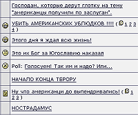 Люди остаются людьми. У стен американского посольства в Москве лежат цветы вперемежку с плакатами "Это вам за Югославию". В Интернете - почти то же самое. Как сказал один из героев фильма "Мулен Руж" - "Люди - порождение Дьявола. Шоу должно продолжаться". Оно и продолжается.