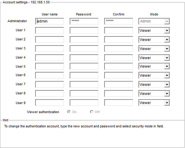 Собственно, настраивать там практически нечего - за исключением пользователей и паролей. По умолчанию тут установлены логин "admin" и такой же пароль, ну и по крайней мере пароль обязательно нужно будет поменять.