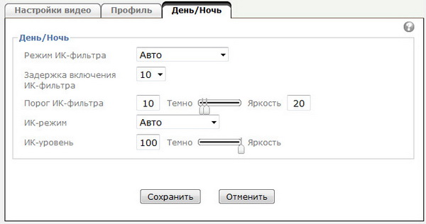Также тут задается и настраивается режим день/ночь. (По умолчанию многие камеры переходят в ночной режим даже днем при не особенно хорошем освещении, и это можно исправить.)