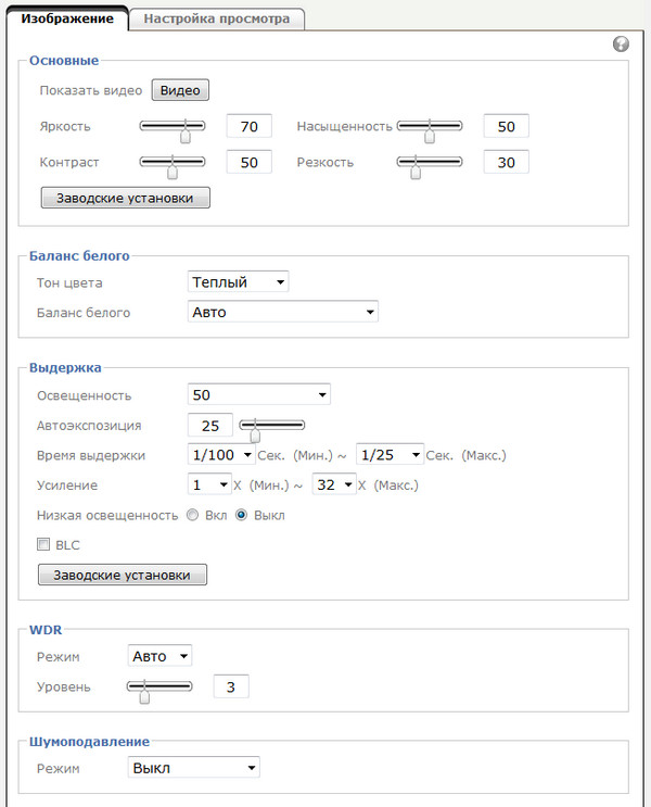 Если вернуться в основное окно админки, то там сверху слева есть пиктограмма визуальной подстройки камеры: цветовая температура, яркость, контраст, цветовойтон - все очень наглядно.