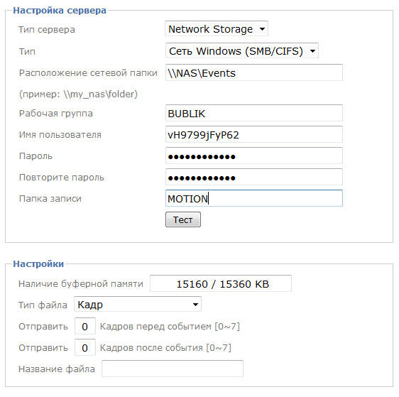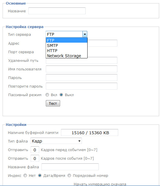 Но события событиями, а тут главное - куда отправлять (записывать) данные об этих событиях (серия фото или видеоклипы). Это все настраивается. Вы можете записывать события на SD-карточку камеры, на FTP, SMTP, HTTP и на сетевой накопитель.
