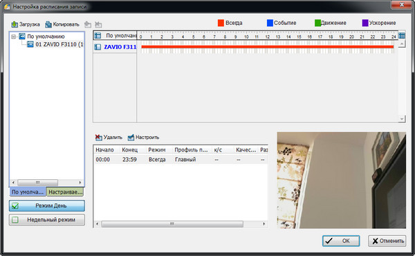 По каждой камере настраивается профиль управления: когда она работает, на что реагирует, как и куда записывает информацию.