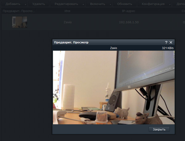 Удаленный доступ через специальный сервис тоже заработал мгновенно, стоило только ввести параметры камеры.
