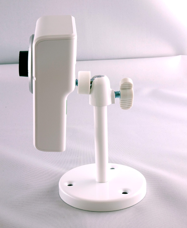 Шарнир с фиксатором в месте крепления ножки к корпусу камеры позволяет настраивать ее положение под различными углами.