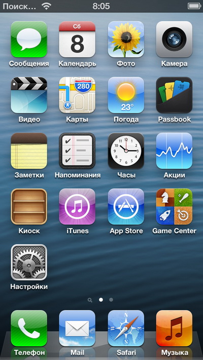 Подробно разбирать работу всех приложений мы не будем: они, как правило, очень мало отличаются от приложений четвертого айфона. Поэтому и постараемся посмотреть именно на отличия.